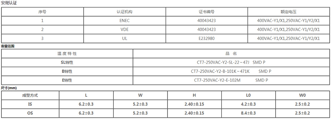 - X1/Y2系列电容器取得UL/VDE/ENEC等安全认证